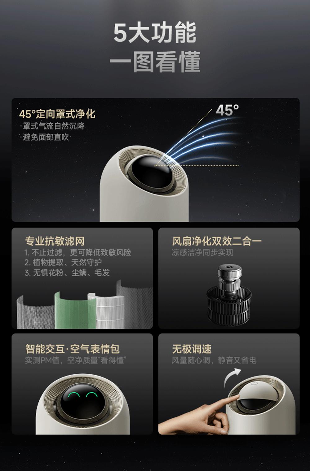通过可爱表情图标直观显示空气质量,搭配智能APP远程操控,随时随地查看家中空气状态,一键调节,简单易懂,让科技温暖每一位家人。