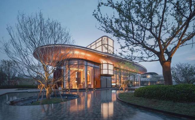 从建筑上来看,入口巨大的圆形穹顶,参照度假酒店的方式做了一个非常不一样的精神空间;以“灯塔”为原型的售楼处,也带给人一种神圣光辉的仪式感。