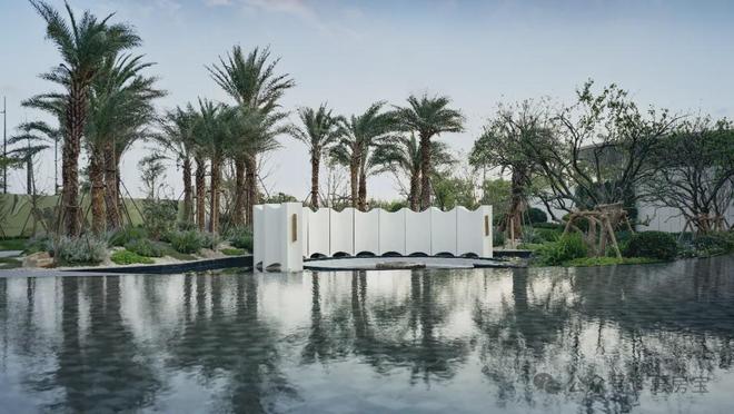 从示范区的打造上来看,保利打造了度假感氛围!采用了国际度假酒店的打造手法,从门头、具有海蓝色的水景、海岛感的花园植物,丰富艺术品的植入,以及非常亮眼的上海首个浮雕水景艺术卡座,营造轻松、惬意的氛围,像这样的松弛场景在项目中数不胜数,给到客户强烈的度假感和松弛感。